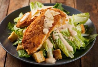 Milanesa de Pollo con Ensalada Para el pollo: 850 g de filete de pechuga de pollo 2 huevos 1 taza de harina de trigo 1 cdta de orégano 1 cdta de pimentón ahumado molido 1 cdta de ajo en polvo ¼ cdta de mix de pimientas Para la ensalada: Lechuga picada Queso parmesano rallado Crutones […]