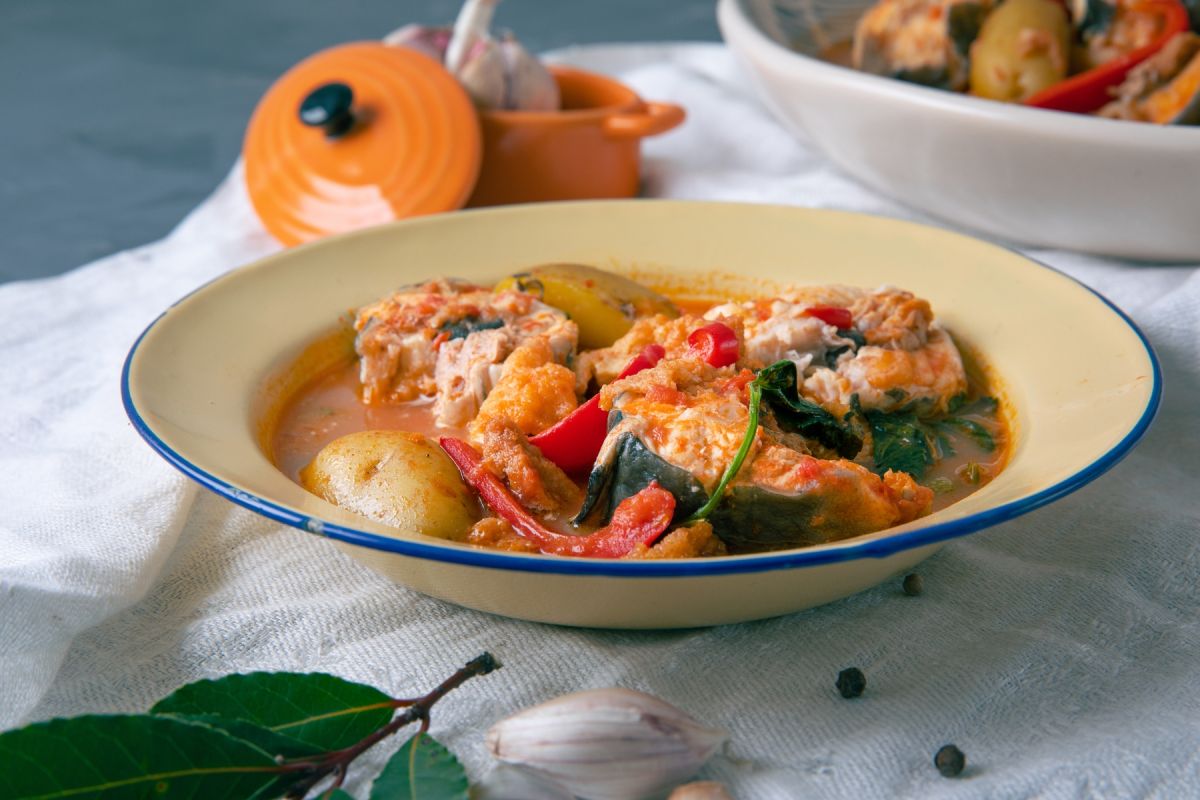 - Cuando las papas ya estén cocidas añadir el congrio ya trozados acomodando con cuidado, ponemos encima la rama de huacatay en rama y deshojada y dejar cocer por 5 minutos, y rectificar la sazón y agregar la leche mover con cuidado y dejar reposar por unos minutos para luego proceder a servir en un plato hondo y disfrutar de esta delicia.