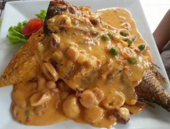 - Una vez listo procedemos a servir en un plato ponemos el pescado entero frito con mucho cuidado luego la salsa se vierte sobre la chita frita.